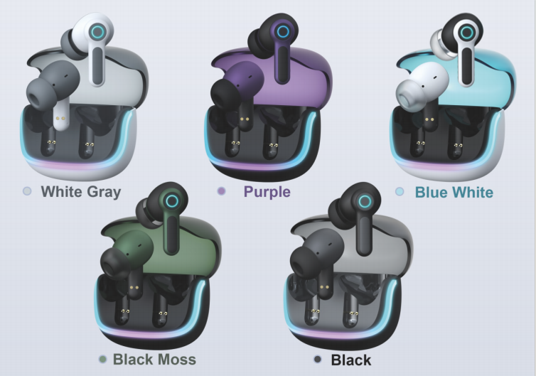 TWS true wireless In-ear earbuds ENC quad mic game mode with RGB (each earbuds have two mics,total 4 mics) — engineered by Shenzhen Maxentrop Technology Co., Ltd. for global OEM/ODM brands.
